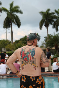 Dann war ab 19 Uhr Pre-Party am Pool angesagt. Und ich sage Euch - viele langhaarige, dicke tätowierte coole Menschen.